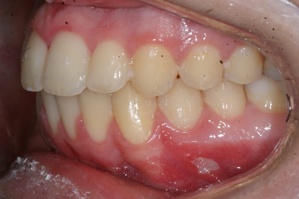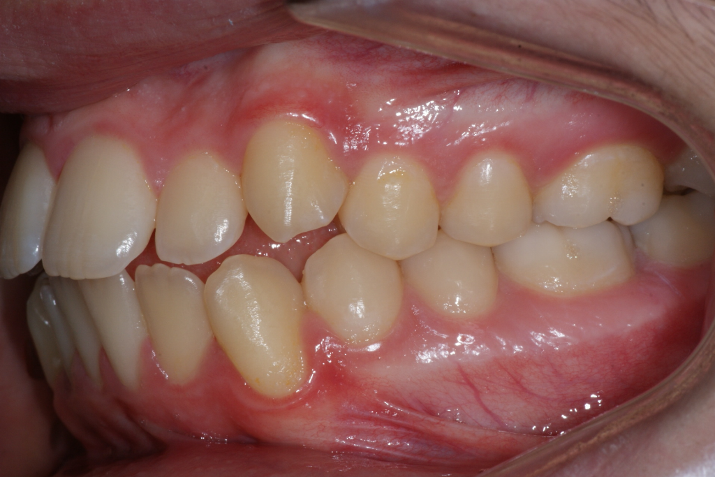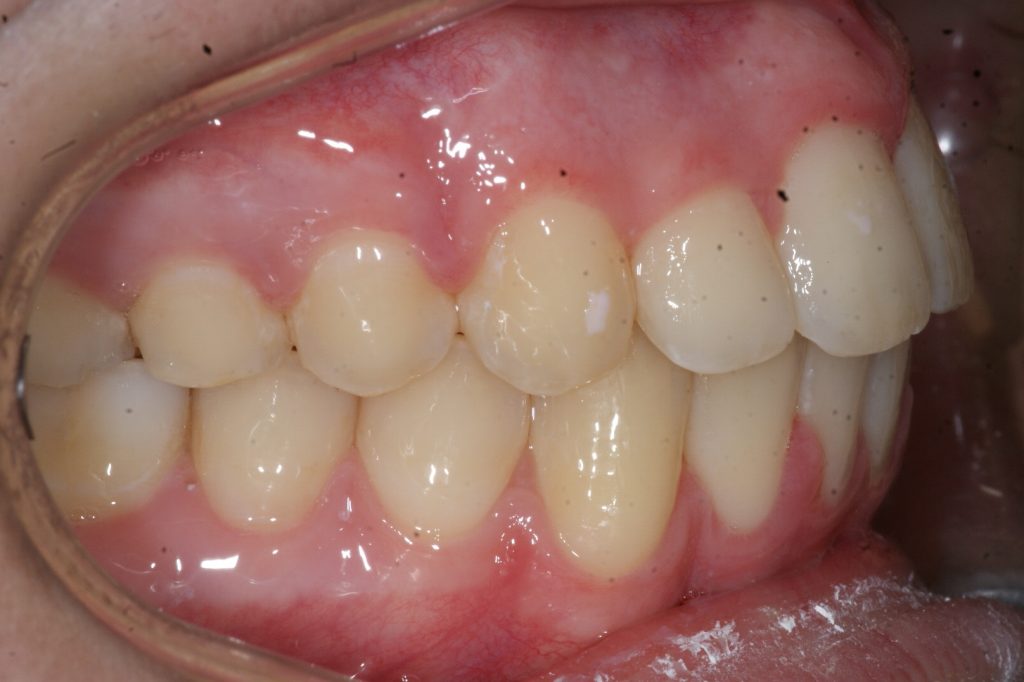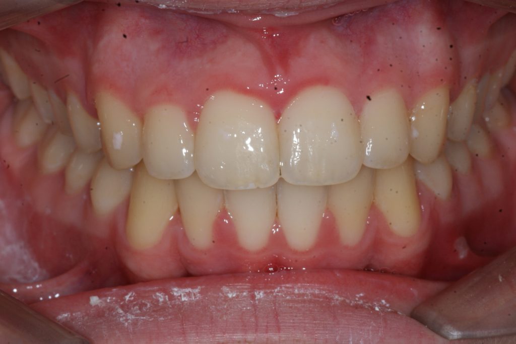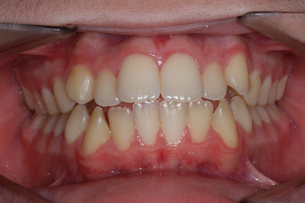 Correction d’une malocclusion de type Classe I accompagnée d’une légère béance en antérieurs. Des appareils fixes (boîtiers) furent nécessaires pour améliorer ce sourire. Traitement chez un adolescent, réalisé en 19 mois.