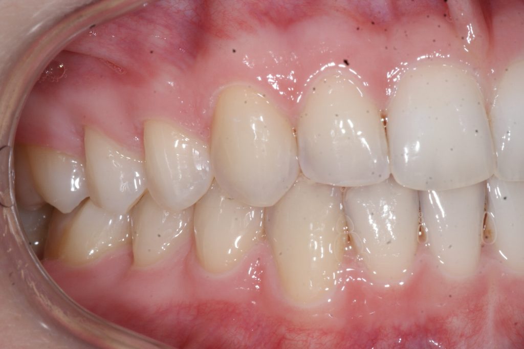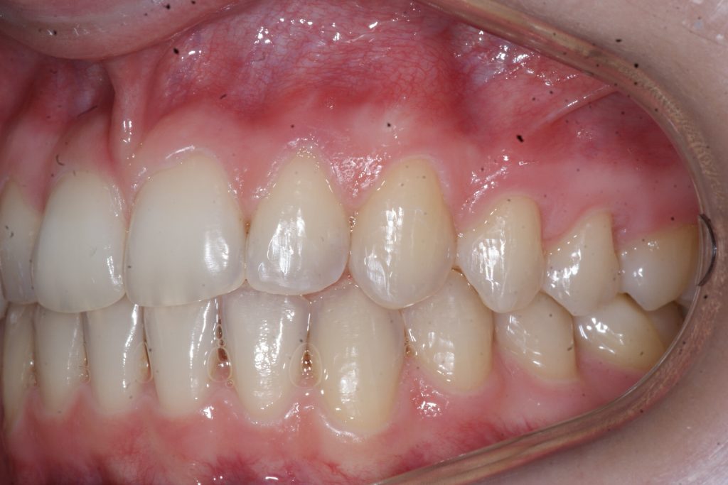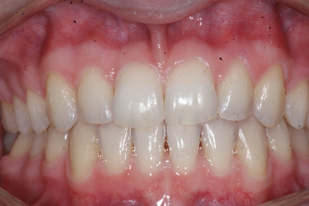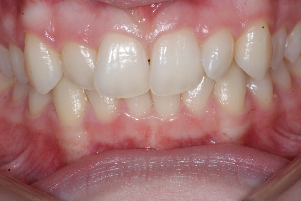Correction d’une malocclusion de type Classe I, surplombs inadéquats et chevauchement modéré aux 2 arcades.  45 coquilles furent nécessaires pour améliorer ce sourire.  Traitement chez une adolescente, réalisé en 15 mois.