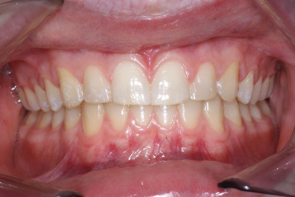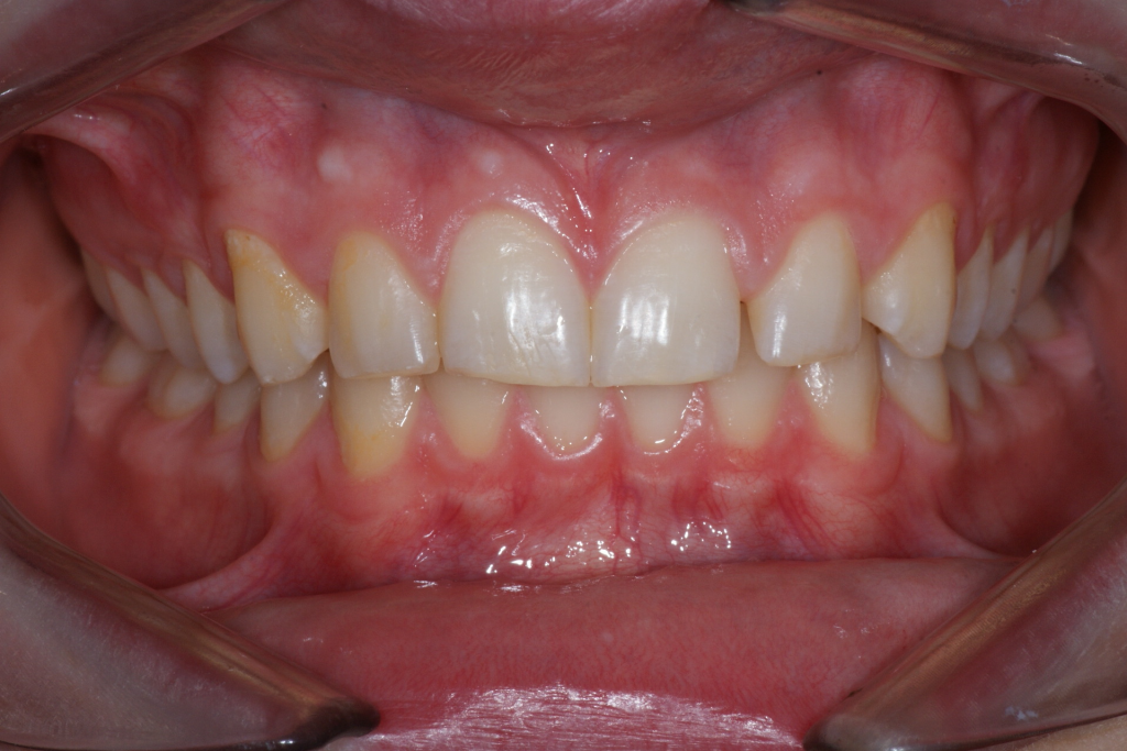 Correction d’une malocclusion de type Classe I, surplombs inadéquats et diastèmes à l’arcade supérieure. 59 coquilles furent nécessaires pour améliorer ce sourire. Traitement chez un adolescent, réalisé en 19 mois.